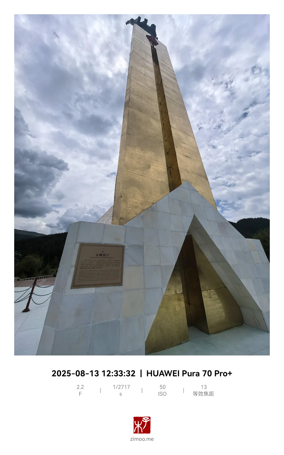 自驾川西第二站支线:松潘红军长征纪念碑碑园。8月12日上午逛了川主寺后,离吃午餐还有一会儿,去逛了停车河对岸的长征纪念碑碑园——纪念红军长征全历程的总纪念碑,被称为“中华第一金碑”。